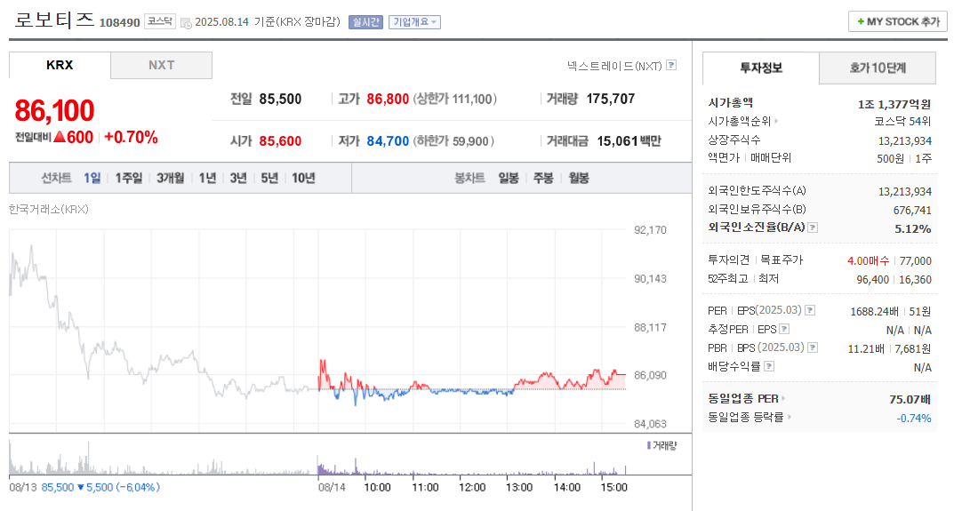 이 기술력과 사업 확장은 로보티즈의 주가와 투자 매력도를 높이고 있습니다.