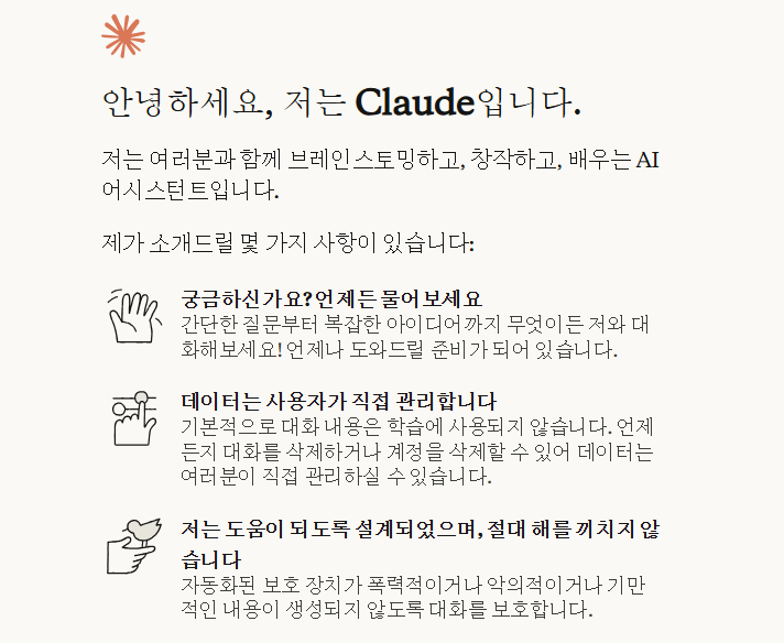 클로드 AI는 단순히 대화를 이어가는 수준이 아니라 정보의 흐름, 맥락, 안전한 판단에 주안점을 둔 챗봇입니다.